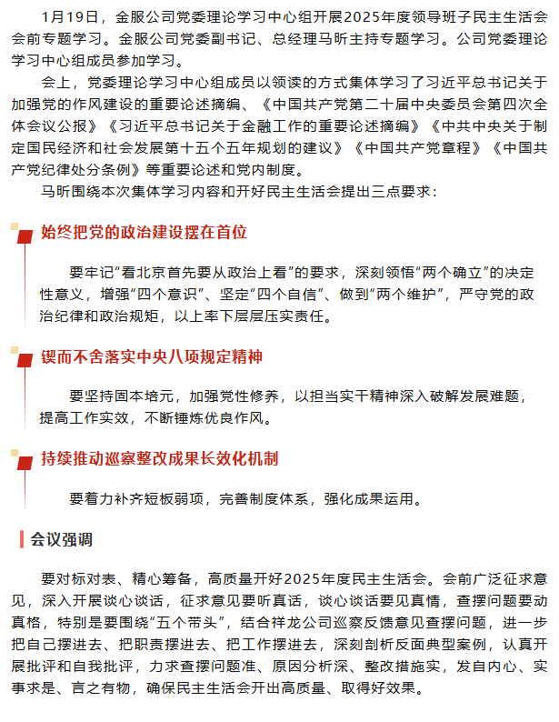 金服公司党委理论学习中心组开展民主生活会专题学习